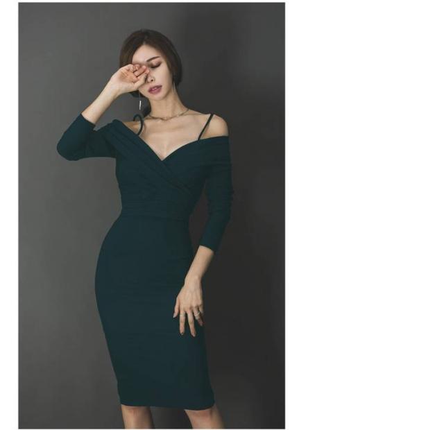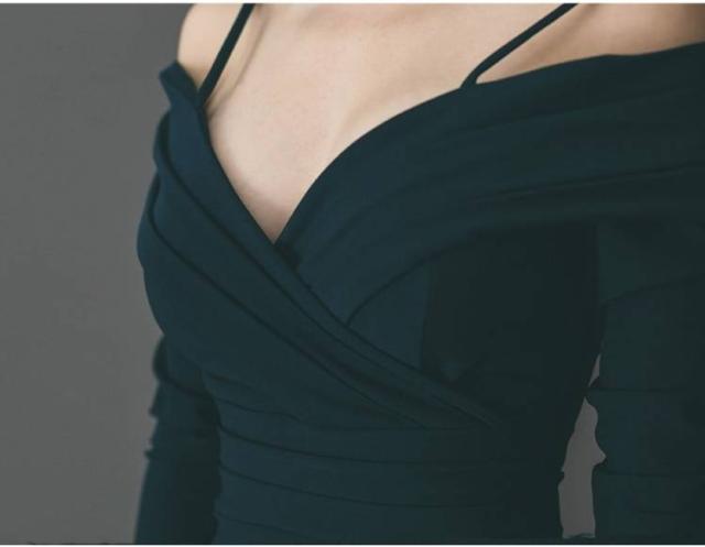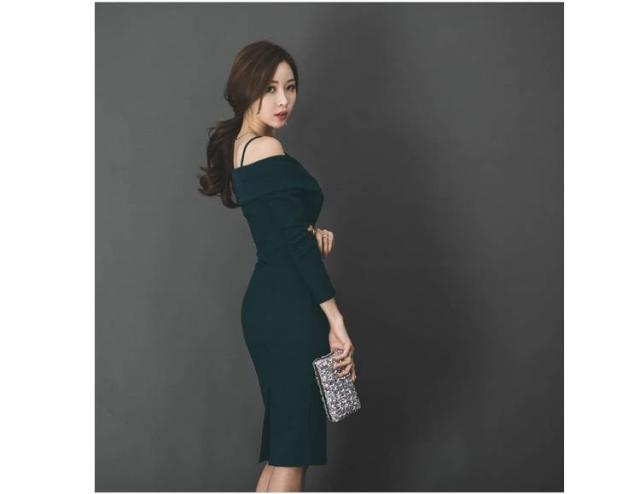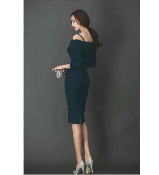 タイトワンピース オフショルダー シャーリング エレガント 大人レディ 無地 シンプル ワンカラー レディース 2018年新作 定番 人気