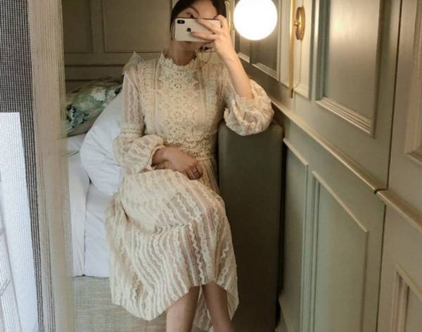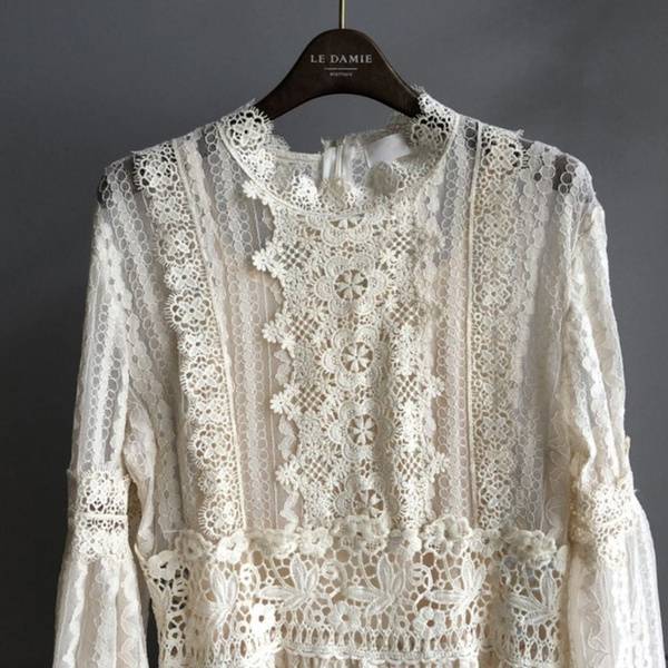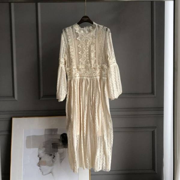 レース ワンピース パフスリーブ ハイウエスト 上品 フェミニン エレガント クラシカル レディース 2018年新作 定番 人気 およばれ