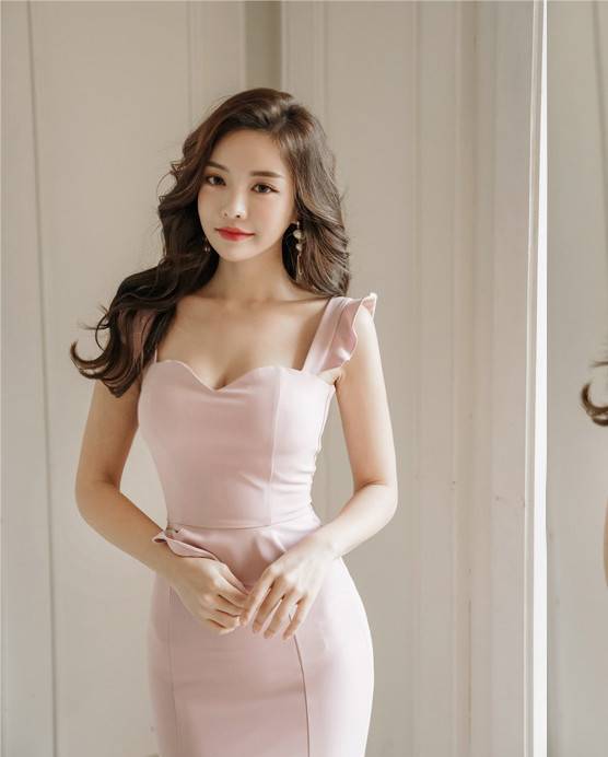 無地 タイトワンピース ペプラムフリル シンプル ワンカラー スリット ノースリーブ ひざ丈 エレガント フェミニン レディース