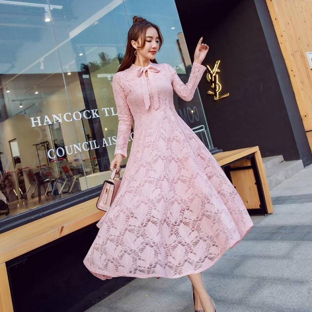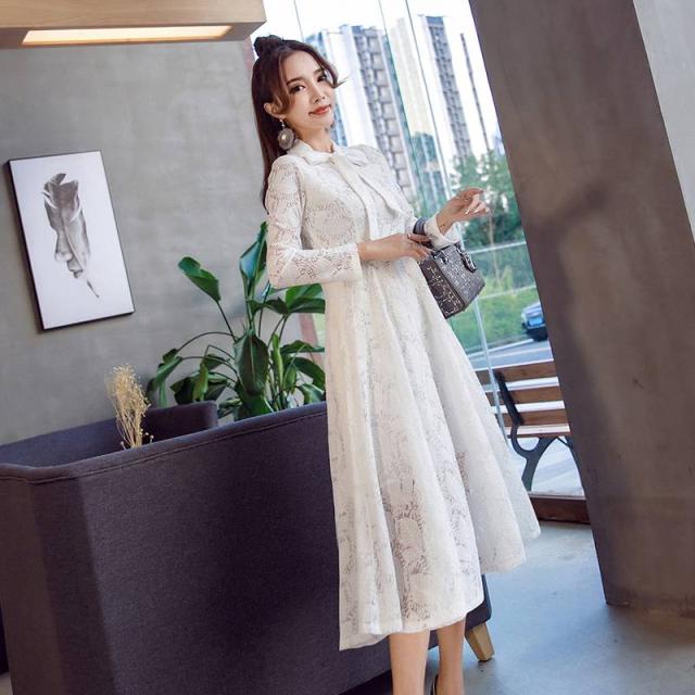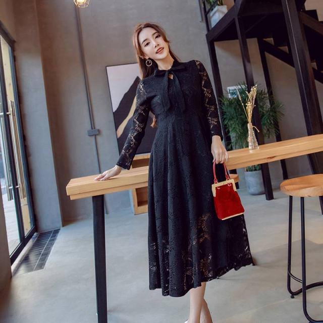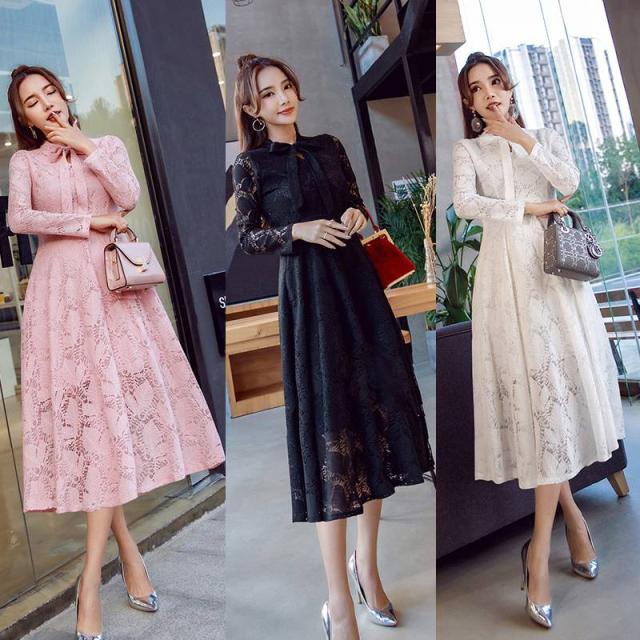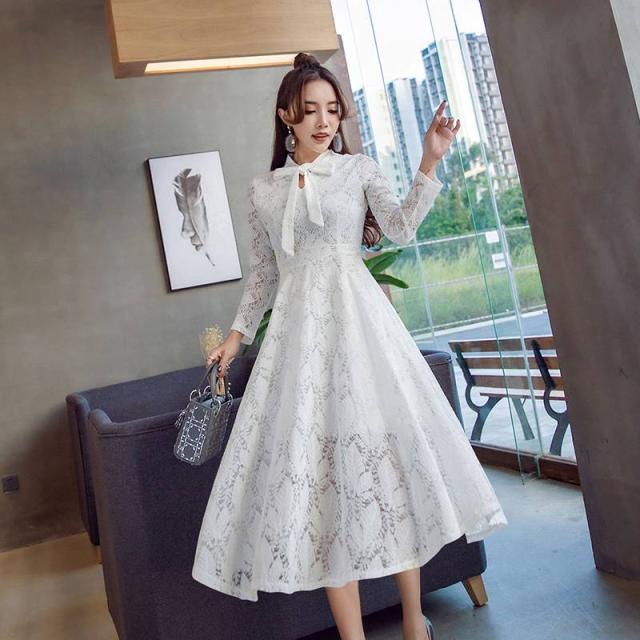 ミディ丈 ワンピース オールレース 総レース 上品 フェミニン エレガント 大人レディ リボンタイ レディース 2018年新作 定番 人気