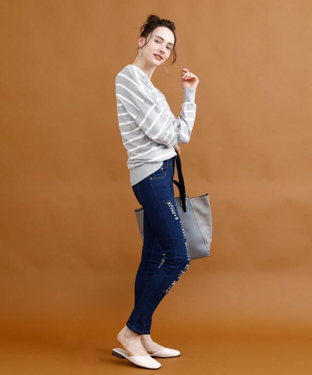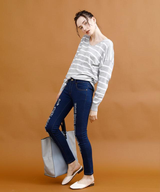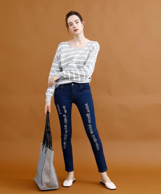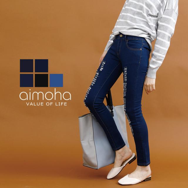 ストレッチクラッシュデニム ストレッチ デニム レディース スキニークラッシュ ダメージ 美脚 スリム タイト ジーンズ ジーパン スキニー パンツ