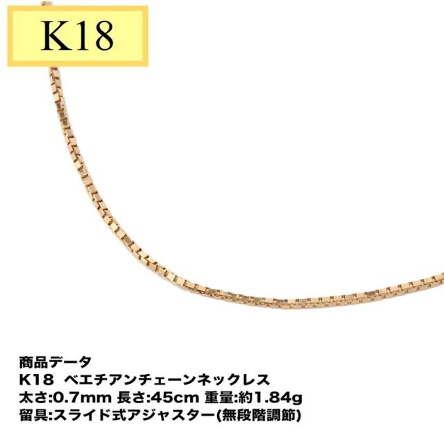 K18 ベネチアンチェーン 0.7mm 45cm平均重量:約1.84g(時期によって多少異なります。)