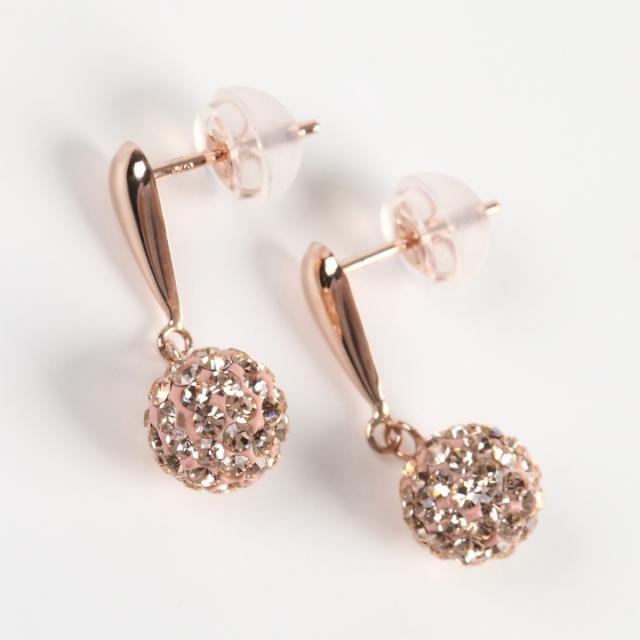 K10PG 10金 ピンクゴールド チェコガラス パヴェボールピアス