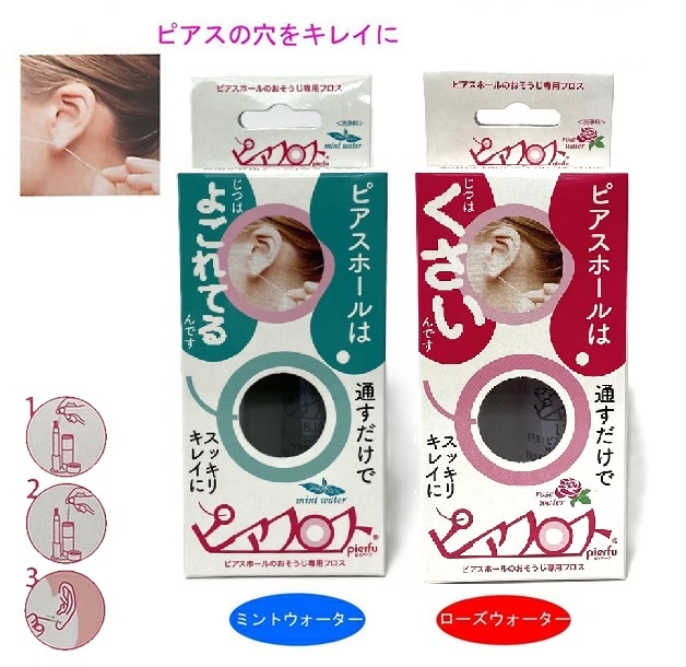 ピアスホールケア PIAFLOSS ピアフロス ピアスホール専用ケア 和紙フロスとハーブウォータがセット