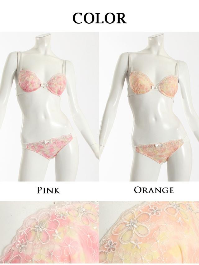 ☆ふんわりとした色合いのブラ&ショーツセットは花の刺繍が施されたcuteな下着セット♪