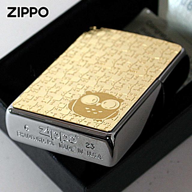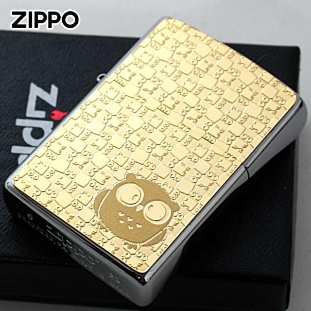 Zippo ジッポライター フクロウ ゴールドプレート #200 メタルプレート 両面加工 ニッケルメッキ 2MP-フクロウ メール便専用商品