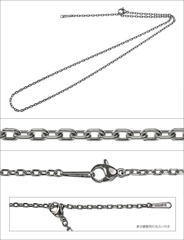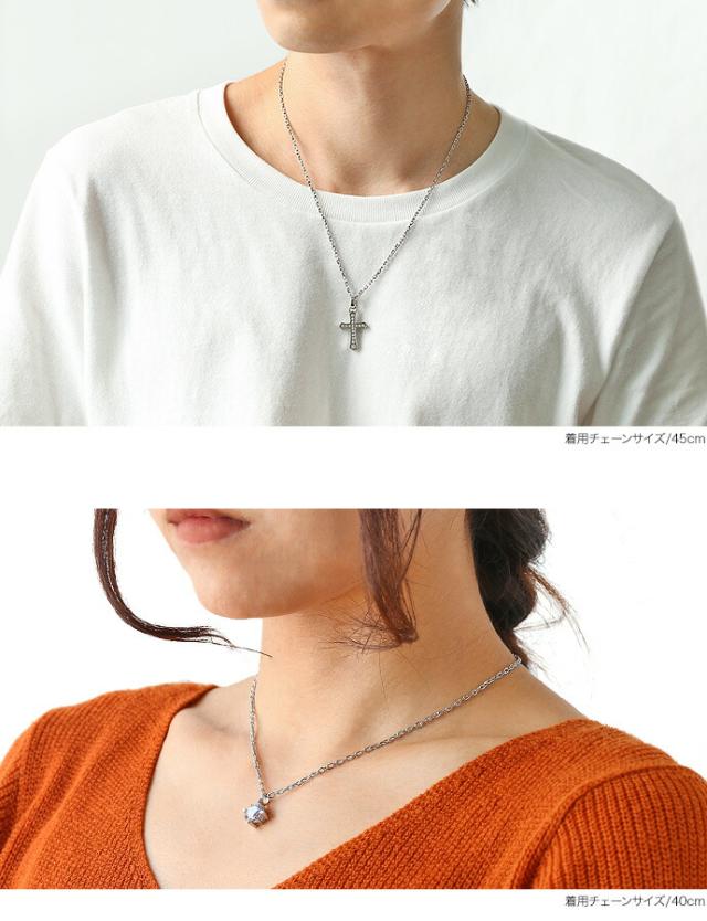 アズキチェーンの4面にカットを入れたデザインのステンレス製チェーン。光の当たる面が多いので普通のアズキチェーンよりキラキラと輝いて見えます。調節用のマルカン(輪)が付いており、40cmチェーンは2.5cm、50cmは5cm短く調節できます。ステンレスはアレルギーが出にくい素材と言われています。汚れにくいのでお手入れ不要なところも嬉しいポイントです。