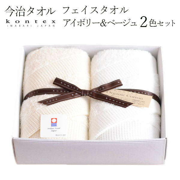 「送料無料」 Waffle Border バスタオル/フェイスタオル/ゲストタオル BEIGE/IVORY セット ( コンテックス 退職祝い 定年 )
