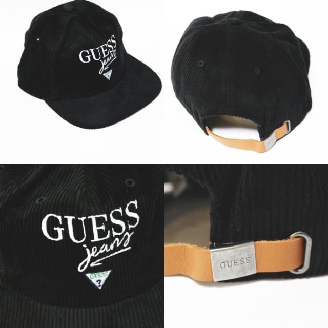 GUESS GREEN LABEL ゲス グリーンレーベル CAP キャップ ブラック コーデュロイ ストレートキャップ スナップバック mens
