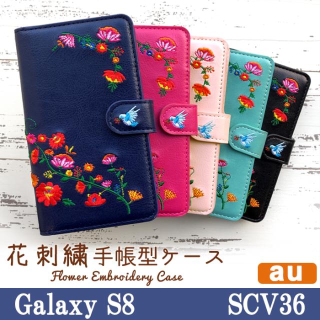 Galaxy S8 SCV36 ケース カバー 手帳 手帳型 花刺繍 スマホケース スマホカバー ギャラクシー S8