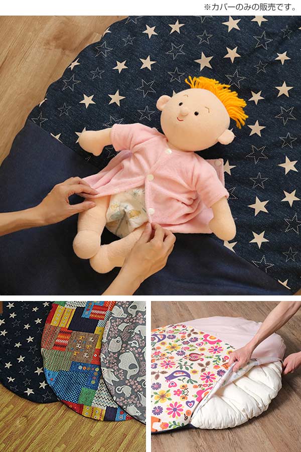 ラージサイズのいねむりふとん専用のカバーです。ちょっとした模様替え気分に、また赤ちゃんが汗をかいたりミルクを吐いて汚してしまったときの洗い替えに重宝します。※画像はサイズ違いの商品によるイメージです。