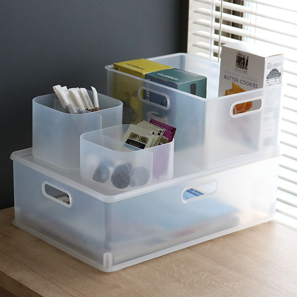 単体で小物・文具・調味料などを入れて使うのはもちろん、同シリーズのプレートやインボックスと組み合わせてもお使いいただけます。引き出しの中の整理にも大活躍します。