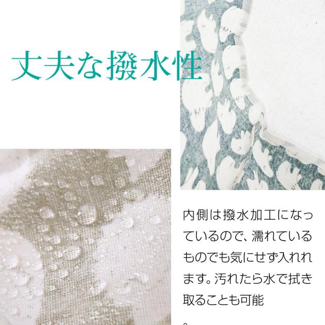 - リピート購入です。何を入れるにも便利で、気に入っています。柄も可愛い。持ち運びも楽です。