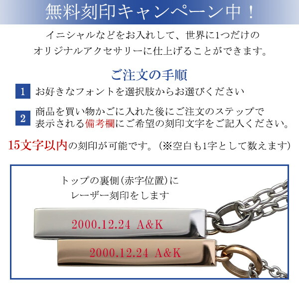 ※ご希望の刻 印文字は商品をお買い物かごに入れた後、ご注文ステップ時の備考欄に、メンズ・レディースそれぞれご記入下さい。