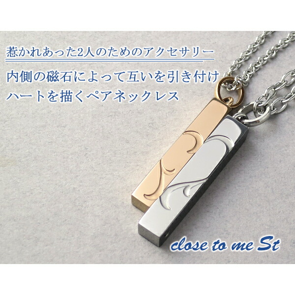 【close to me】磁石で引き合いハートを描くステンレスペアネックレス