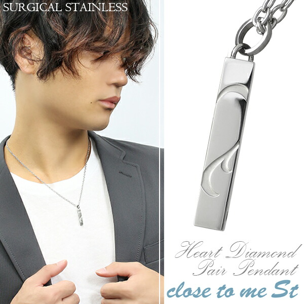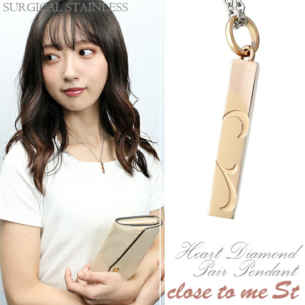 刻印無料 close to me St ハート バー 天然 ダイヤモンド ステンレス ペアネックレス ペアアクセサリー ペアネックレス 金属アレルギー 刻印 ブランド ステンレス 2本セット