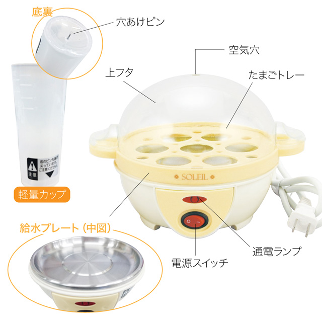 電気 ゆでたまご器 電気ゆでたまご器 自動 ゆで卵器 調理器 半熟たまご 固ゆでたまご ソレイユ sl-25