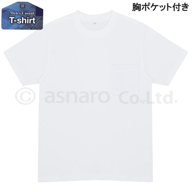 半袖Tシャツ 男性 紳士 丸首 Tシャツ ポケット付ホワイト