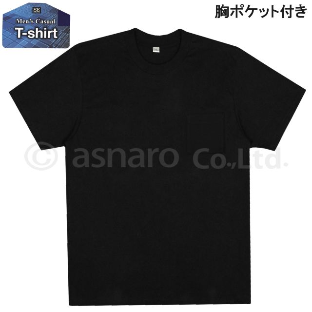 半袖Tシャツ 男性 紳士 丸首 Tシャツ ポケット付ブラック