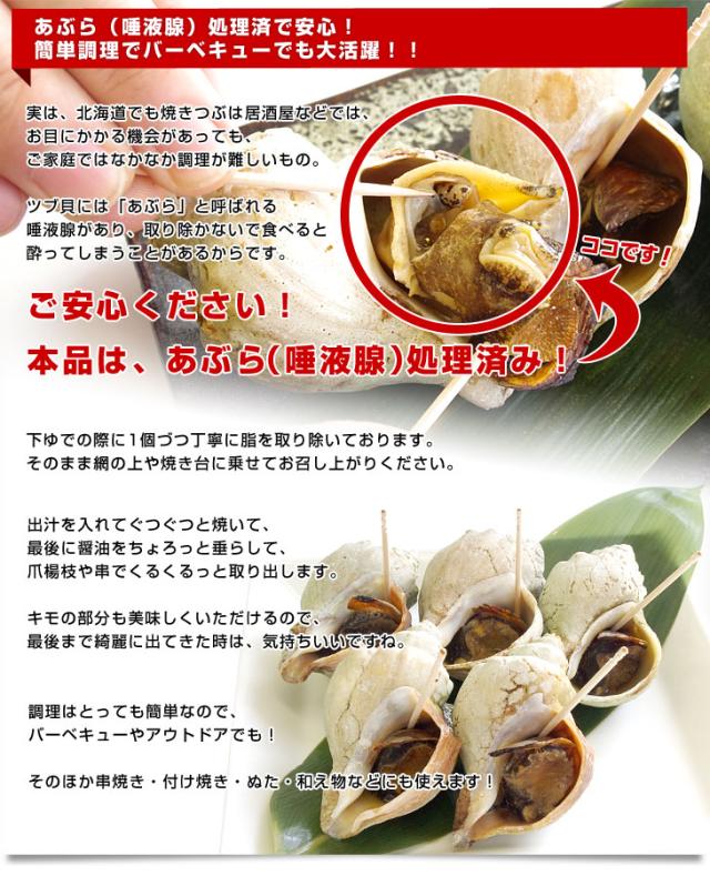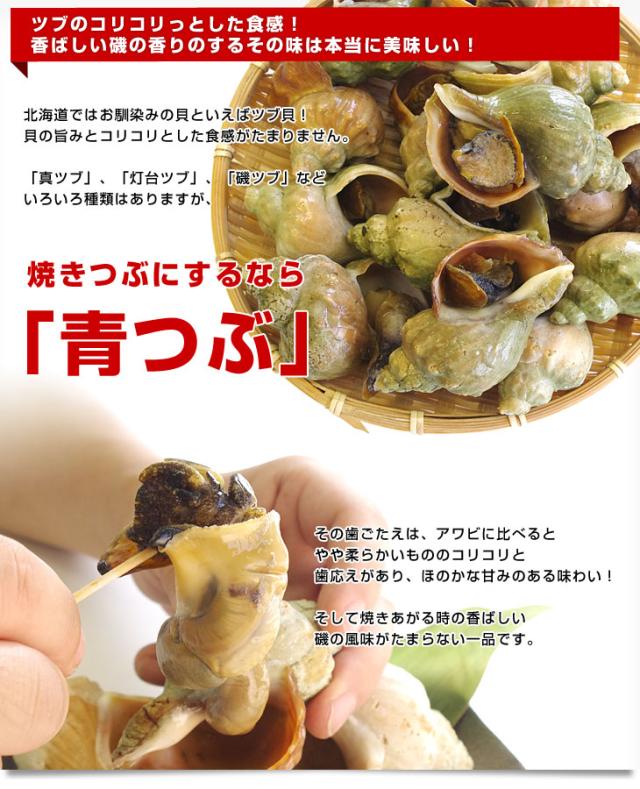 北海道産 焼きつぶ用 青つぶ (あぶら処理済み・ボイル) Lから2Lサイズ 約1キロ (8個から15個入り) 産直だより 北海道直送 ツブ 貝付き 送料無料 【発送時期:カート内に記載しております】
