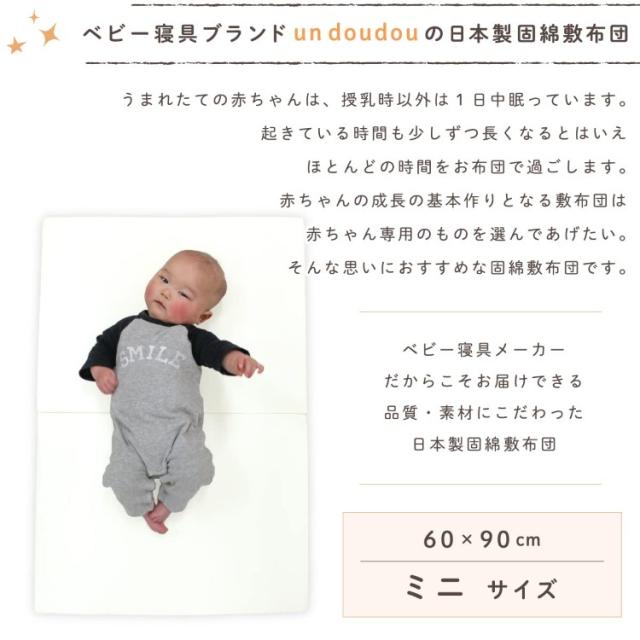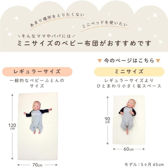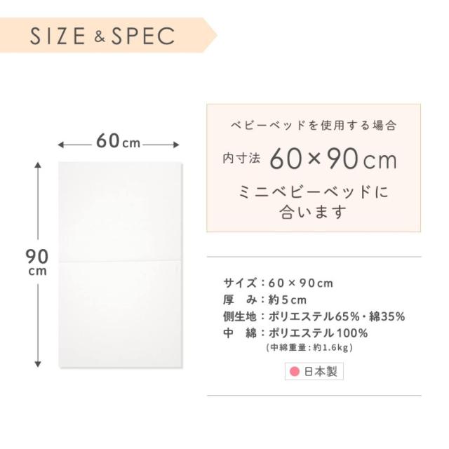 内寸60×90cmのミニベビーベッドにも合う敷布団です。