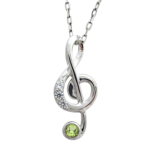 シルバー アクセサリー ト音記号 ネックレス 音符モチーフ ペンダント ペリドット 母の日2018