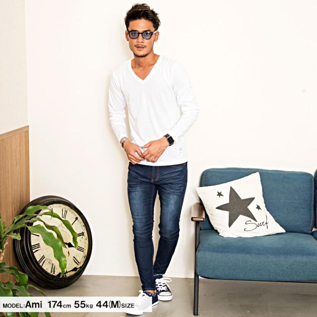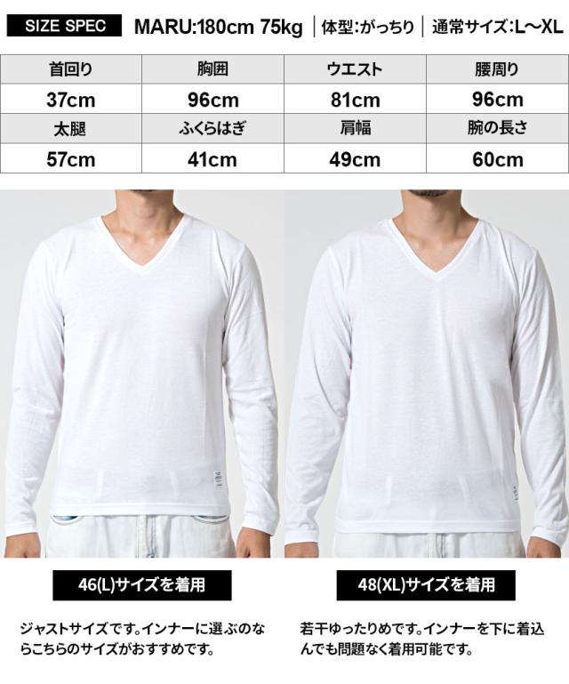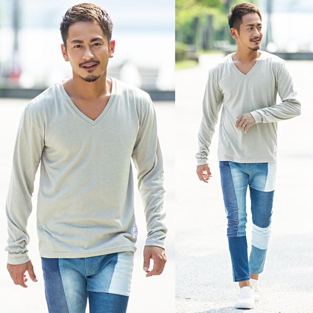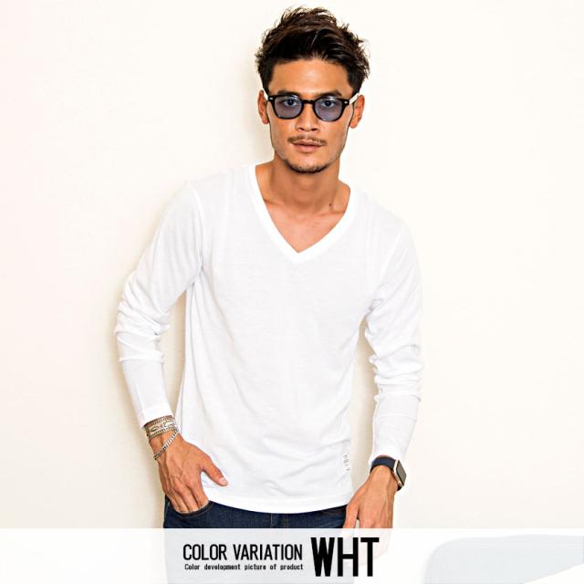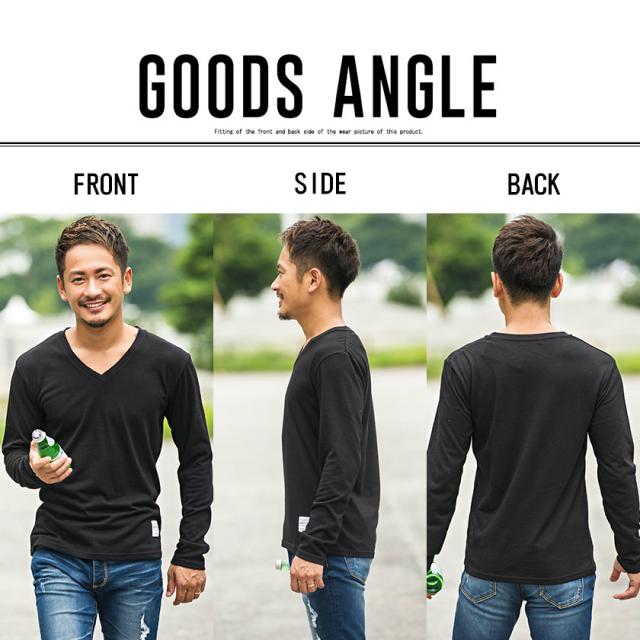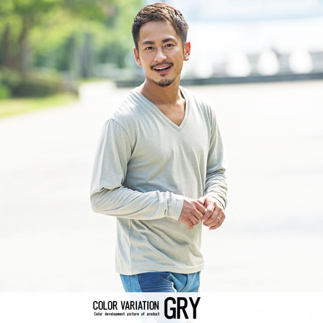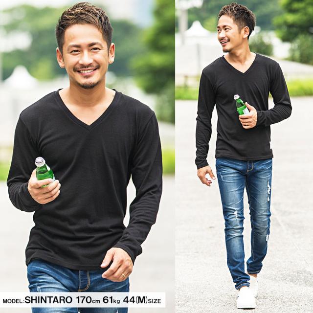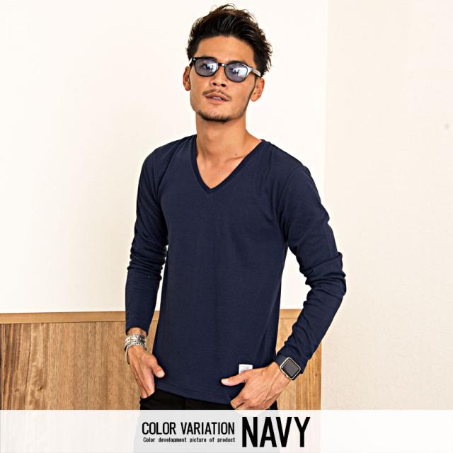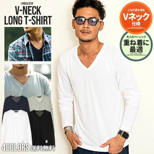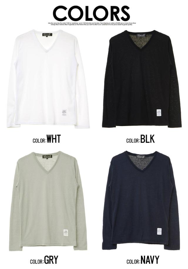 【送料無料】Tシャツ メンズ ゆうパケット1 長袖 CavariA キャバリア トップス インナー カットソー ロンT Vネック 無地 シンプル ベーシック ホワイト ブラック グレー ネイビー 黒 白 M L XL 秋 冬 即日発送 [CARYU13-01]