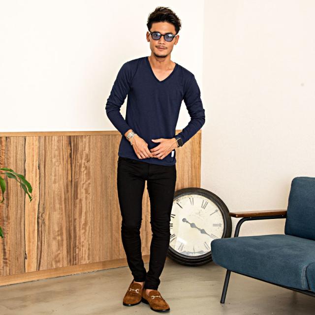 シンプルな無地のVネックTシャツはどんなコーデにも合わせやすい6色を用意。