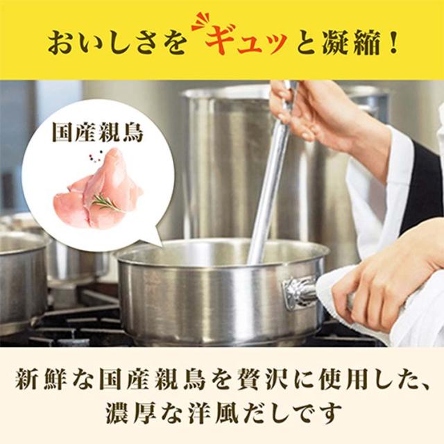 ●新鮮な国産老鶏本来の風味と味を実現したチキンコンソメです。