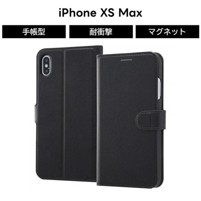 iPhoneXS Max カバー ケース 手帳型 レザー 革 保護 マグネット シンプル カード入れ ポケット付き スタンド付き 収納 iPhone XSMax アイフォン ブラック