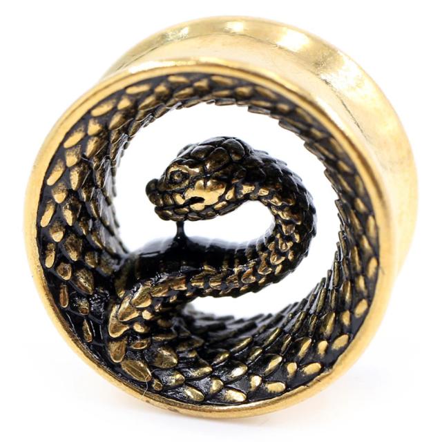 [0G 00G 12mm ボディピアス] 大蛇ダブルフレア(ゴールド) ボディーピアス ステンレス 金色 ヘビ へび スネーク スネイク 面白い かっこいい おもしろい ユニーク メンズ レディース 男性 女性 プレゼント プラグ ホール系 おしゃれ ギフト 大きい ダブルフレア型 人気 流行