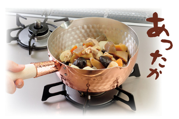 銅はさまざまな食品に含まれていますが、毎日必要な量を摂取しようと思うとなかなか難しく、不足しがちです。銅製の鍋や食器を使用することで、自然に身体に必要な銅を摂取することができ、健康を維持するのに効果的です。また、銅には殺菌作用を発揮する性質があり、銅イオンの働きで微生物の発生を防ぐため、鍋を衛生的に保つことができます。