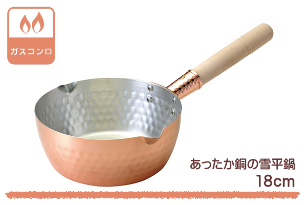 雪平鍋 18cm ガス火専用 銅製 あったか銅の行平鍋 片手鍋 日本製 ( ガス火対応 片手なべ 銅製鍋 18センチ 行平鍋 ゆきひら鍋 小鍋 鍋 なべ 銅製片手鍋 銅製雪平鍋 調理器具 キッチン用品 )