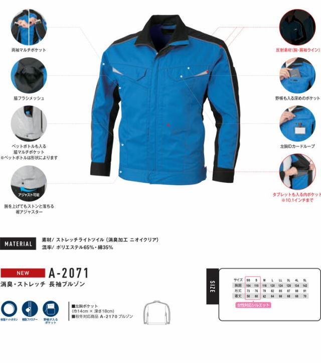 co-cos コーコス消臭・ストレッチ 長袖ブルゾン A-2071 春夏