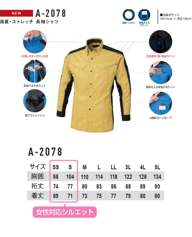 co-cos コーコス消臭・ストレッチ 長袖シャツ A-2078 春夏