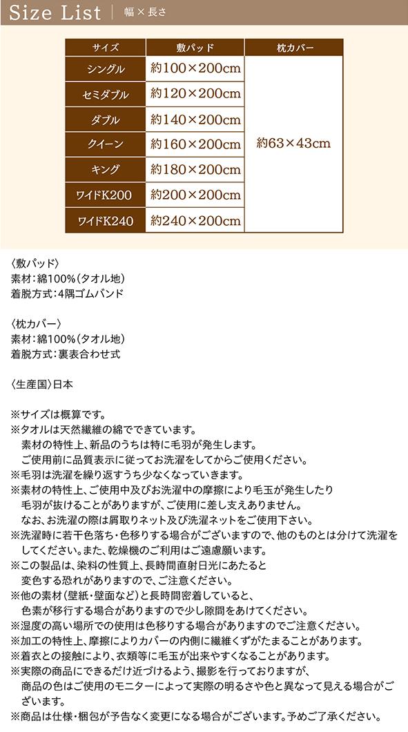 世界の今治タオル 綿100% 家族のためのコットンタオルシリーズ 敷きパッド単品 ワイドK200 アイボリー