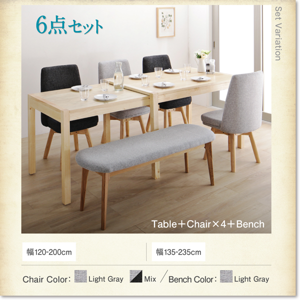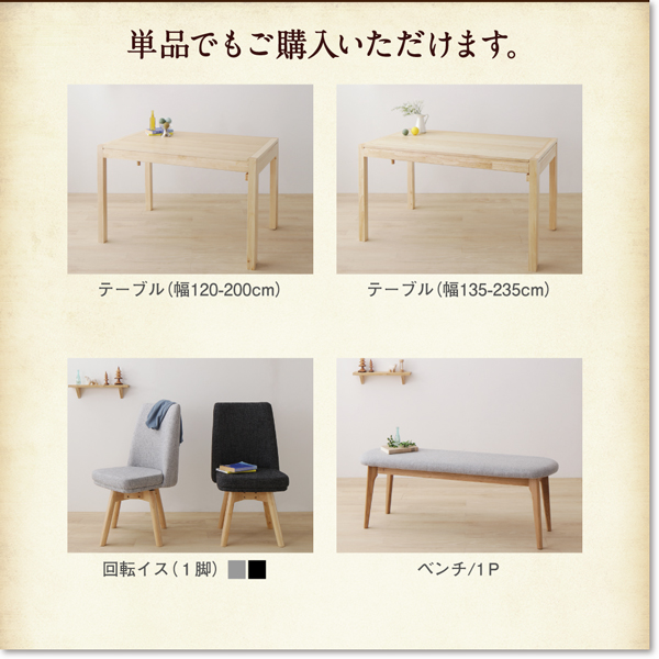 ダイニングセット/ダイニングテーブル/ダイニングチェア/ダイニングベンチ/スライド伸縮式/エクステンションテーブル/回転イス/回転チェア