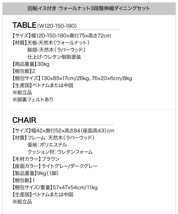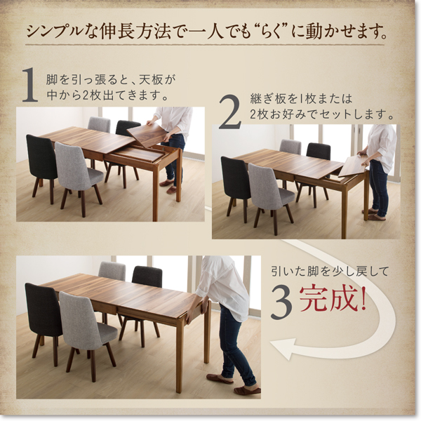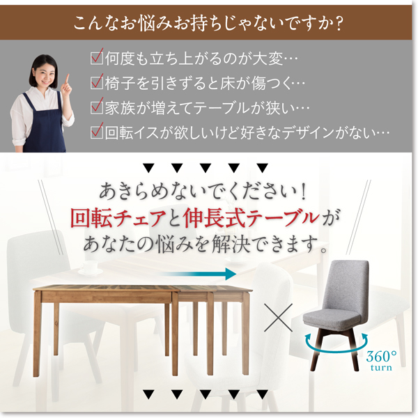 ダイニングセット/ダイニングテーブル/ダイニングチェア/ダイニングベンチ/伸縮式/エクステンションテーブル/回転イス/回転チェア/天然木/木製