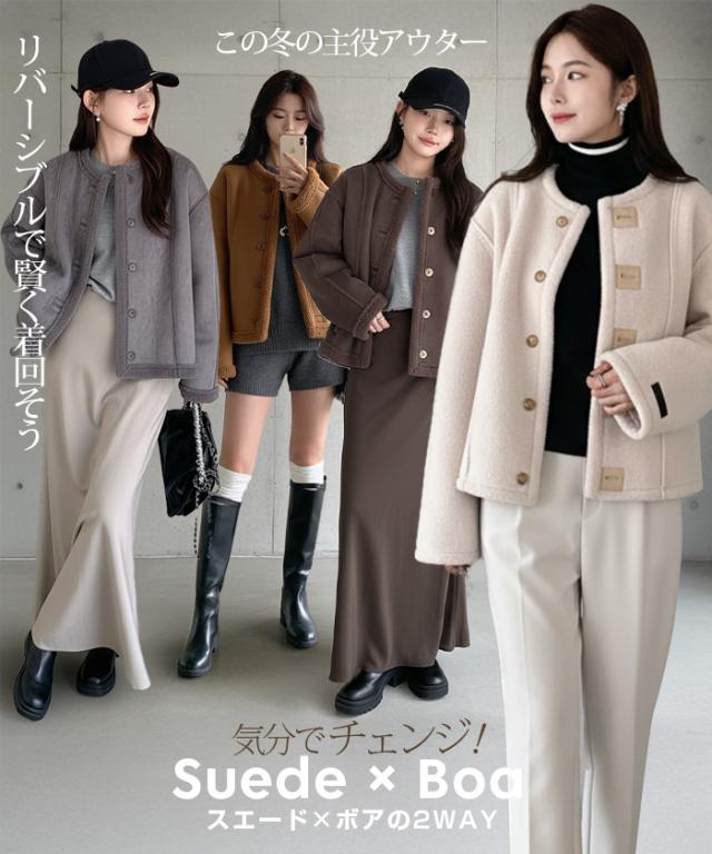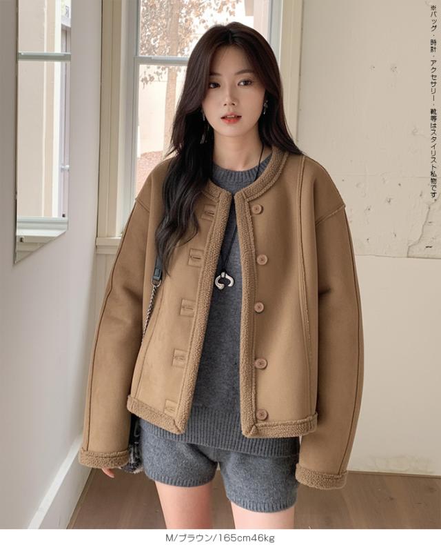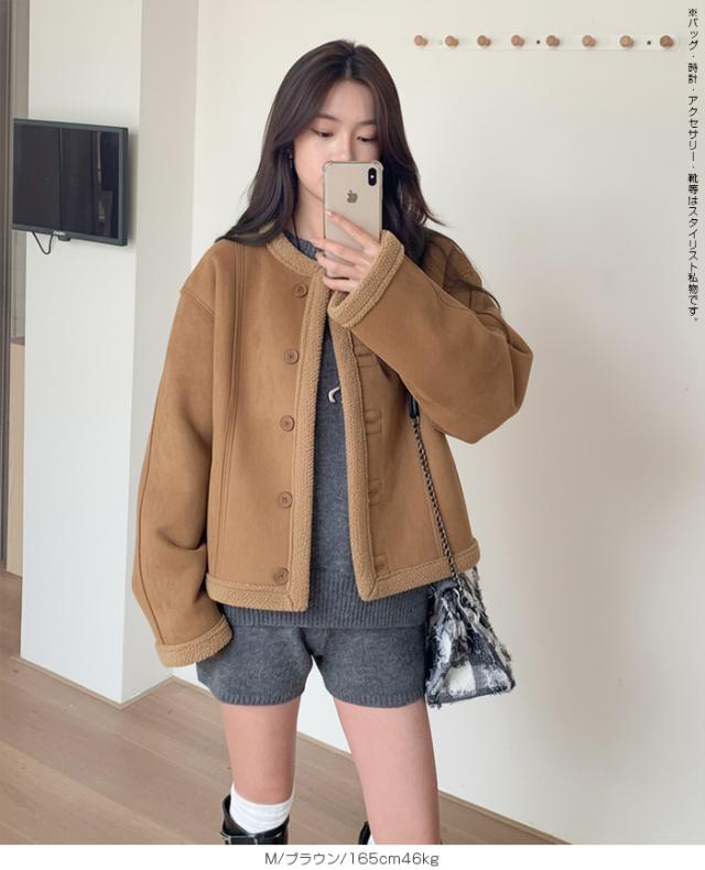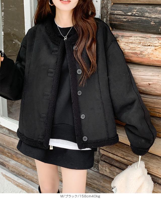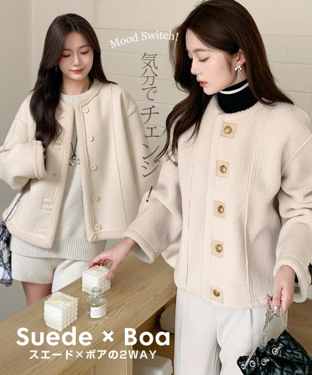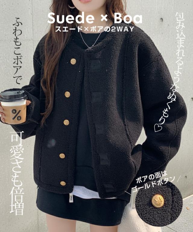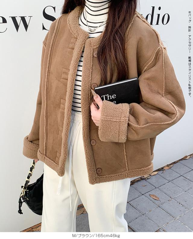 選べる2点で半額!【2WAY/防寒】リバーシブル ジャケット レディース 秋冬 アウター ボアジャケット フェイクムートン ジャケット スエード ノーカラージャケット ショート丈 ブルゾン 体型カバー ゆったり 羽織り 【リバーシブルボアジャケット】 秋新作