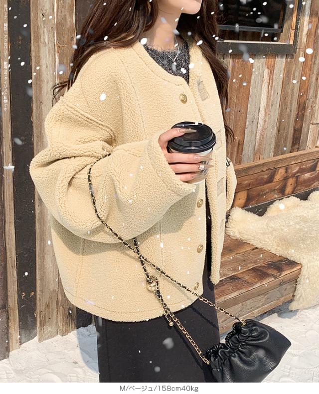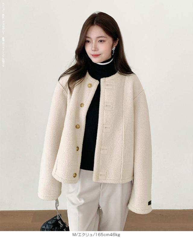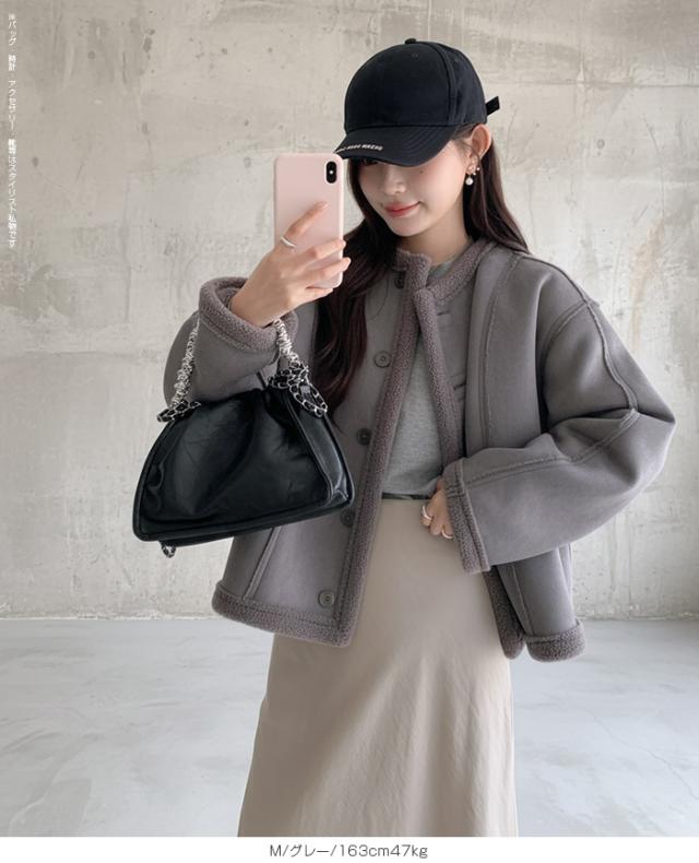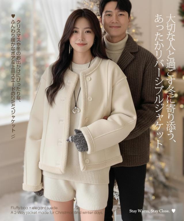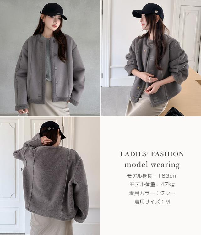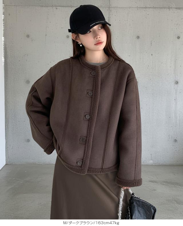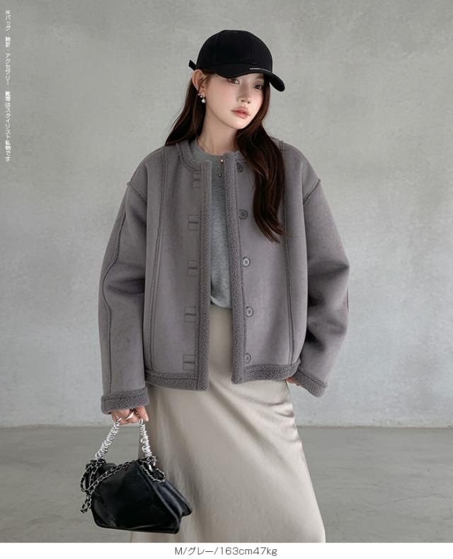 選べる2点で半額!【2WAY/防寒】リバーシブル ジャケット レディース 秋冬 アウター ボアジャケット フェイクムートン ジャケット スエード ノーカラージャケット ショート丈 ブルゾン 体型カバー ゆったり 羽織り 【リバーシブルボアジャケット】 秋新作