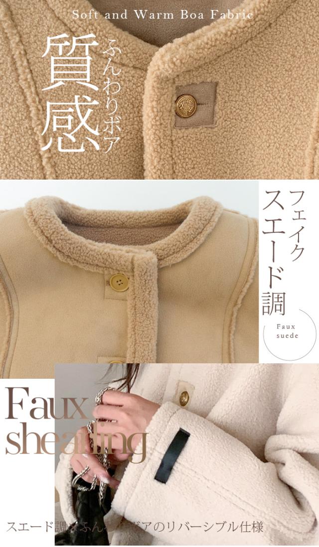 フェイクスエード×ボアのリバーシブル仕様ノーカラージャケット