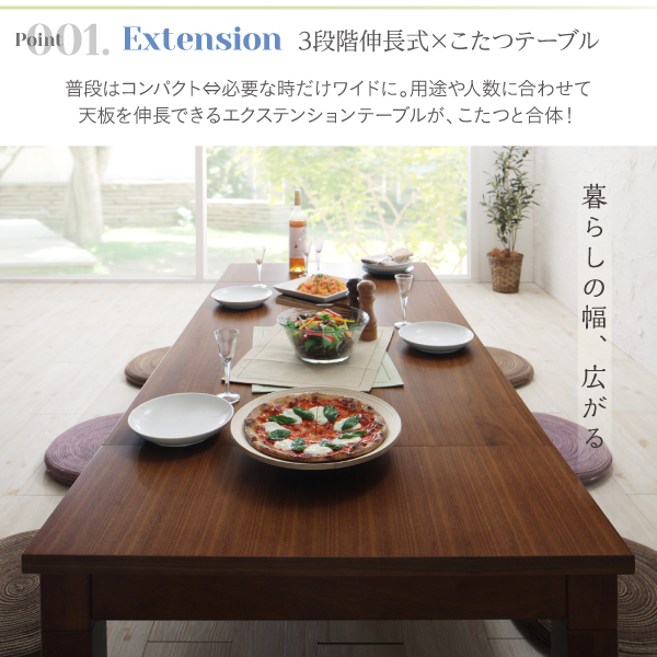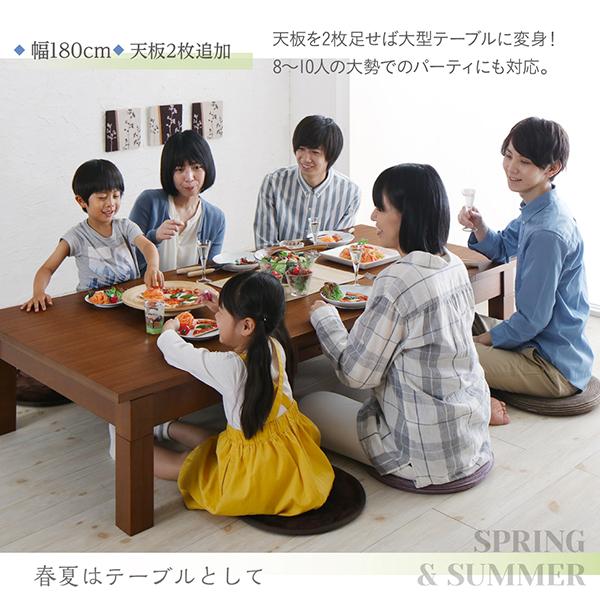 こたつテーブル/リビングテーブル/ローテーブル/天然木/木製/伸張式/伸縮式/エクステンション