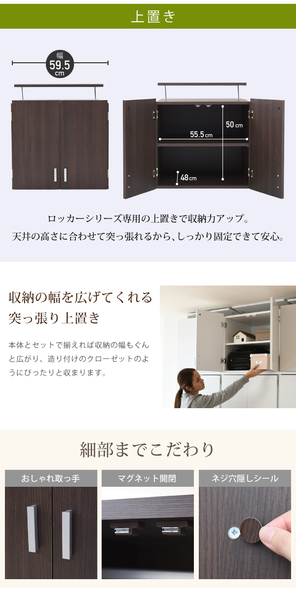 ロッカー シリーズ 上置き 棚 ラック 単品 幅60 天井 つっぱり 収納 クローゼット 衣類収納 服