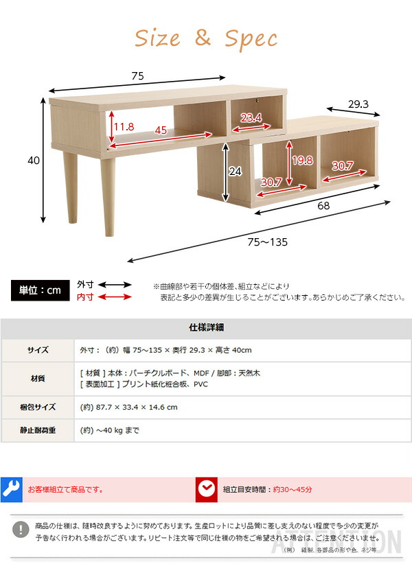 (約)幅75〜135x奥行29.5x高さ40cm(約)12.77kg