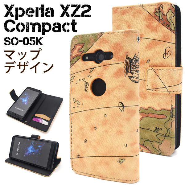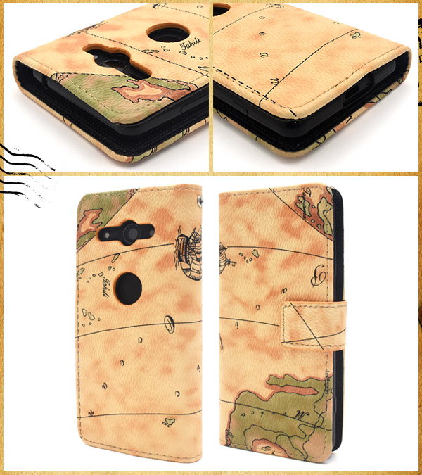 スマホケース 手帳型 Xperia XZ2 Compact SO-05K用 ワールドデザイン スマートフォンケース 地図柄 マップデザイン シンプル かわいい スマホカバー 手帳系 横開き 携帯ケース 携帯カバー ケータイケース