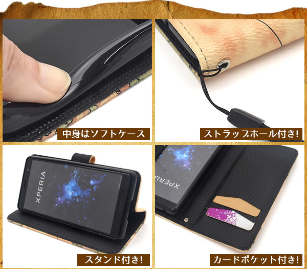レトロな世界地図デザインがオシャレな、マップデザインの手帳型ケース!背面を折り返すとスタンドとして使用できるので、動画視聴に最適!内側にはポケットが2つがあり、カード類を入れるのに便利です。また、落下防止に便利なストラップホール付きです。 内部はソフトケースなので着脱が簡単!カメラはもちろん、イヤホンや各種ボタンなどをケースに入れたまま操作可能です。※ライセンス商品ではありません。※スマートフォン、ストラップは付属しません。※デザイン、色味は画像と異なる場合がございます。