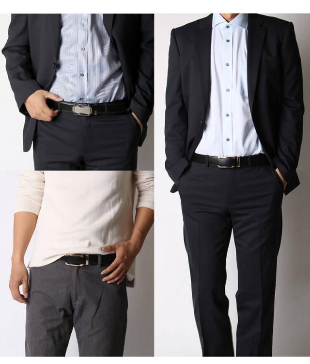 ベルト メンズ 本革 牛革 レザーベルト オートロック式 キーリット ワンタッチ メール便(箱)発送 メール便で送料無料 oth-ux-be-1683 レールストップ ノンスリップ スライドベルト 男性 父の日