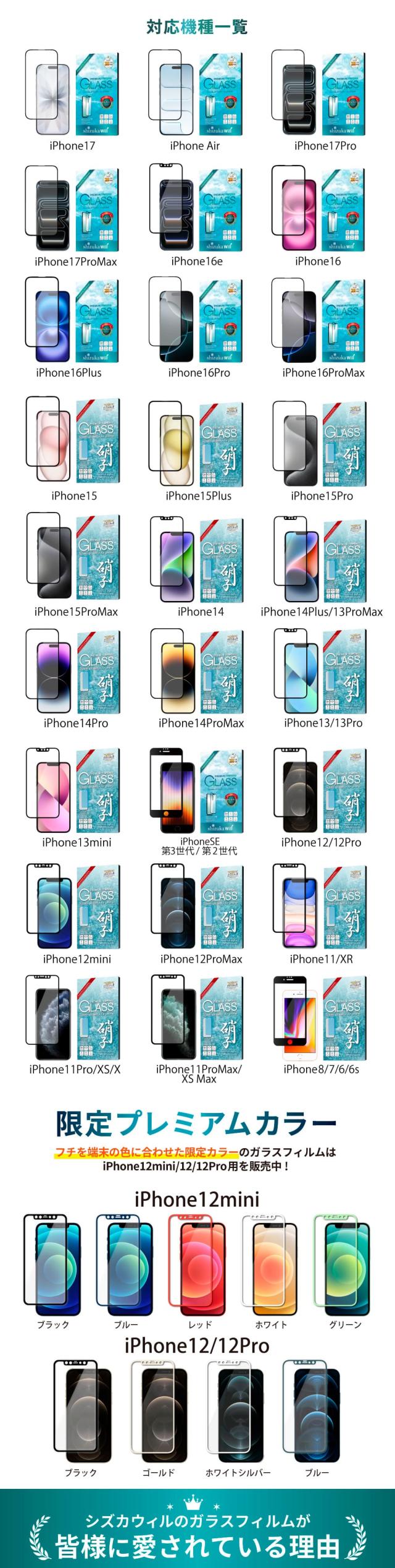 iPhone17 ガラスフィルム iPhone16e iPhone16 iPhone15 保護フィルム iPhone14 フィルム iPhone13 pro max iPhone SE 第3世代 iPhone12 mini iPhone 11 XR Xs 8 7 6 6s iPhone Air 17 17pro 17promax 16e 16pro 全面保護 画面保護フィルム シズカウィル