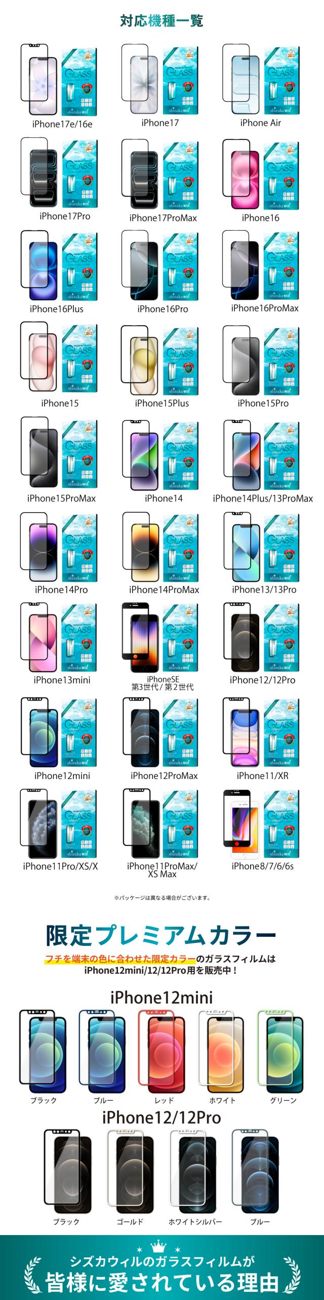 iPhone17 ガラスフィルム iPhone17e iPhone16e iPhone16 iPhone15 保護フィルム iPhone14 フィルム iPhone13 pro max iPhone SE 第3世代 iPhone12 mini iPhone 11 XR Xs 8 7 6 6s iPhone Air 17 17pro 17promax 17e 16e 16pro 全面保護 画面保護 シズカウィル