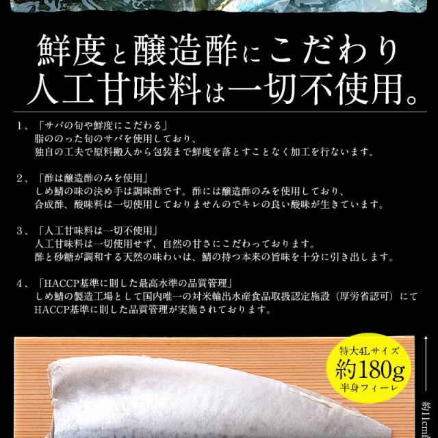 しめ鯖 特大 4L 約180g前後×1枚 しめさば 国産 贈り物 シメサバ ギフト プレゼント お歳暮